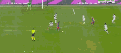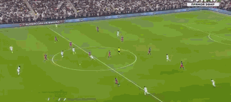 上半时补时阶段,皇马左路进攻,维尼修斯中线前拿球推进硬刚孔德,维尼修斯外道超车推进,孔德高速回追,和队友形成包夹再次拦住维尼修斯,不料却被维尼修斯再次硬突,一个穿裆甩开孔德,维尼修斯内切到小禁区前沿冷静推射远角得手,皇马1:1扳平比分。2分钟,巴萨中路快速反击,佩德里禁区弧顶前送出手术刀式直塞,莱万反越位成功突入禁区获得超近距离单刀,面对出击的门将库尔图瓦,莱万一记挑射得手,巴萨2:1再次取得领先。