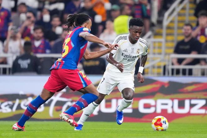 这是连续第4年巴萨和皇马在西超杯赛场展开西班牙德比大战,此前3年,巴萨赢了2次,皇马赢一次,去年巴萨5:2大胜皇马,这也让刚来皇马的姆巴佩多添了一分忧伤。今年再次相遇,姆巴佩前段时间受伤,今天也只能在替补席上待命。开场后两队展开对攻,第12分钟,维尼修斯中场左侧一个加速就轻松撕破巴萨防线,维尼修斯一路狂奔杀入禁区获得小角度半单刀机会,只是他追后推射打的优点正,门将加西亚奋力将球扑住。第35分钟,巴萨中场发动反击,费尔明中圈处策应送出精妙斜塞,拉菲尼亚插上接球,高速突入左侧禁区晃开回防的楚阿梅尼后左脚大力低射,皮球直入球门远端死角,巴萨1:0首开纪录。