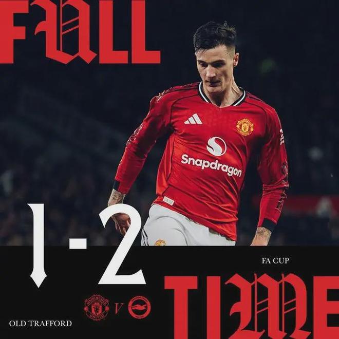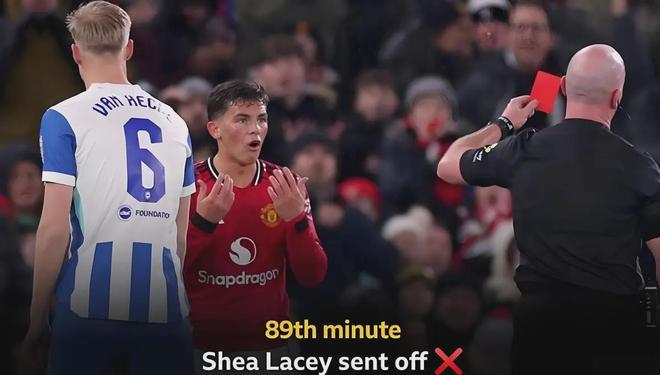 1月12日英超日报,足总杯第三轮,曼联1-2不敌布莱顿。这不是一场普通的失利,这是一次耻辱性的“一轮游”。当终场哨响,镜头捕捉到的不是遗憾,而是绝望——18岁的小将莱西在第90分钟因为砸球发泄,两黄变一红被罚下场。