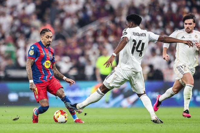 下半时巴尔韦德身体不适无法坚持,居莱尔登场,紧接着巴萨就迎来了第三个进球,禁区线上一连串精妙传接,多达7名皇马球员没有明显失位,还是无法阻止丢球。之后阿隆索连续做出换人,有伤在身的姆巴佩也在第76分钟上场,但最终未能挽回败局。
