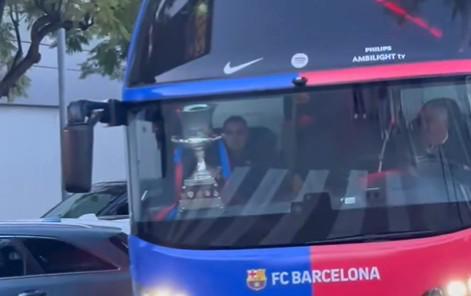 据报道,西班牙超级杯冠军奖杯已经跟随巴萨的球队大巴抵达巴塞罗那,在击败皇马之后,球队在更衣室内进行了短暂但热烈的庆祝,随后从沙特乘坐夜间航班归来。