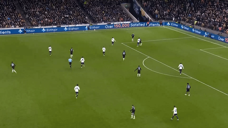 这一特点在首粒进球中体现得淋漓尽致:球队通过中路完成快速推进,四脚纵向传球直接撕裂热刺防线,最终由布恩迪亚完成致命一击。