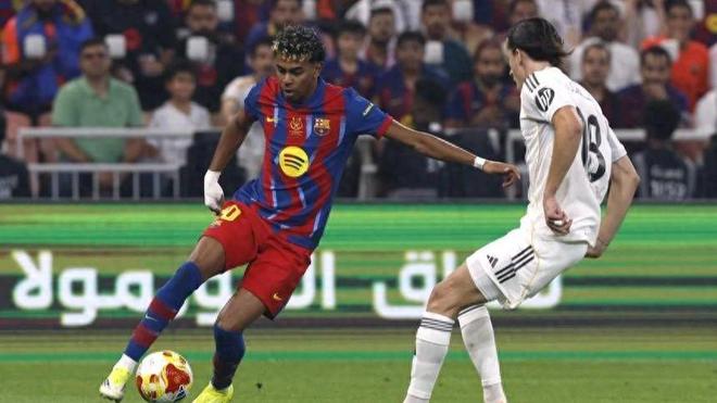 在1月12日西甲日报凌晨结束的2026年西班牙超级杯决赛中,巴塞罗那以3比2力克皇家马德里,捧起冠军奖杯。而在这场万众瞩目的“国家德比”中,巴萨18岁小将拉明·亚马尔不仅踢出了高光表现,更以一种前所未有的沉稳姿态亮相——赛前全程保持低调,彻底告别了往日张扬的风格。