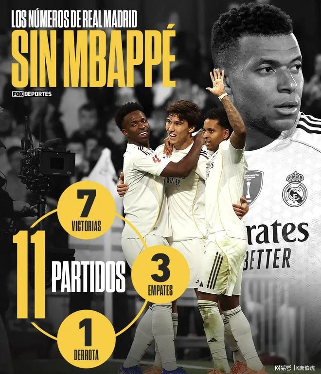 不会任意球、不会头球,作为进攻核心也不能回撤拿球,唯一的优势就是速度。不得不说他已经严重拉低了皇马的上限,其实这样的论点早就在大巴黎应验,不用争论。最新统计显示在姆巴佩缺阵的11场比赛,皇马的战绩为7 胜3 平仅1负,进攻端的多点开花成为最大亮点。