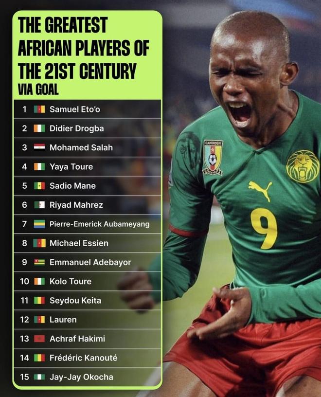 最近GOAL发布了“21世纪最伟大的非洲球员”榜单,埃托奥排第1,德罗巴排第2,萨拉赫只拿到第3。更扎眼的是,马赫雷斯排到第6、阿什拉夫排到第13,而奥科查、阿德巴约这些老一辈名字也挤进了前15,同一张榜单里新老混在一起,排序一出来就很难让所有人都服气。数据截至撰文时2025年12月31日英超日报。