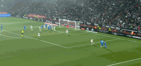 第10分钟,居莱尔任意球直接攻门,皮球高出横梁