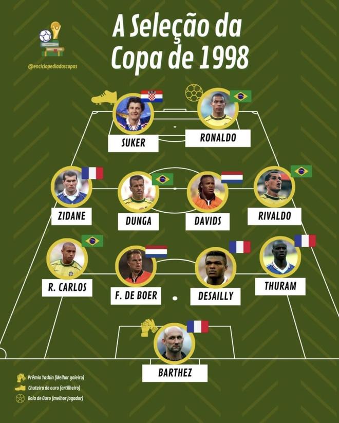 最近Enciclopediadascopas发布了1998世界杯最佳阵容,齐达内、罗纳尔多这些名字一摆出来,光看纸面就很吓人。可同一份阵容里,卡洛斯这种大幅度压上型边后卫、邓加这种老派后腰,放到现在的高压逼抢和超快转换里还能不能吃得开?如果把这套阵容直接丢到今天的比赛节奏里,它到底还是“随便冲冠军”,还是会被现代体系把短板放大到很明显呢?