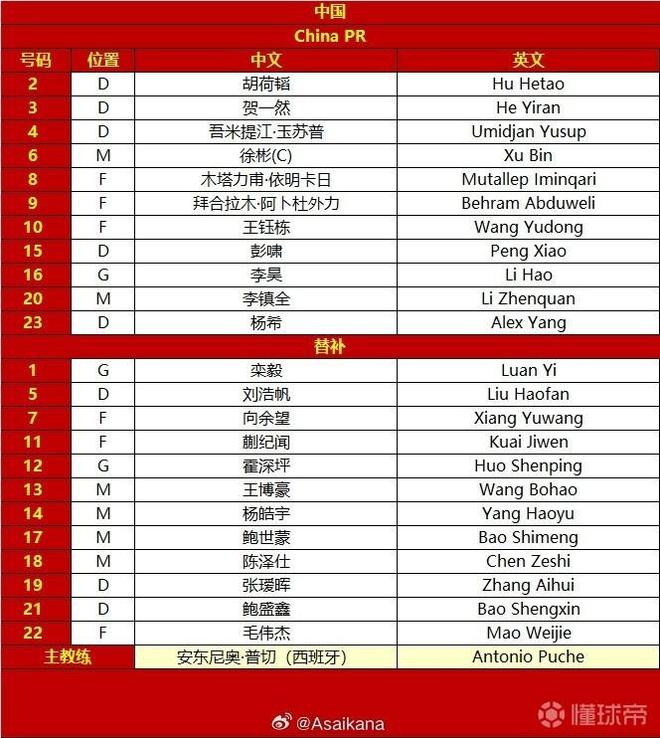 国足U23首发身价是对手的两倍还多,值得一提的是,中国U23是淘汰赛总身价最高的球队。