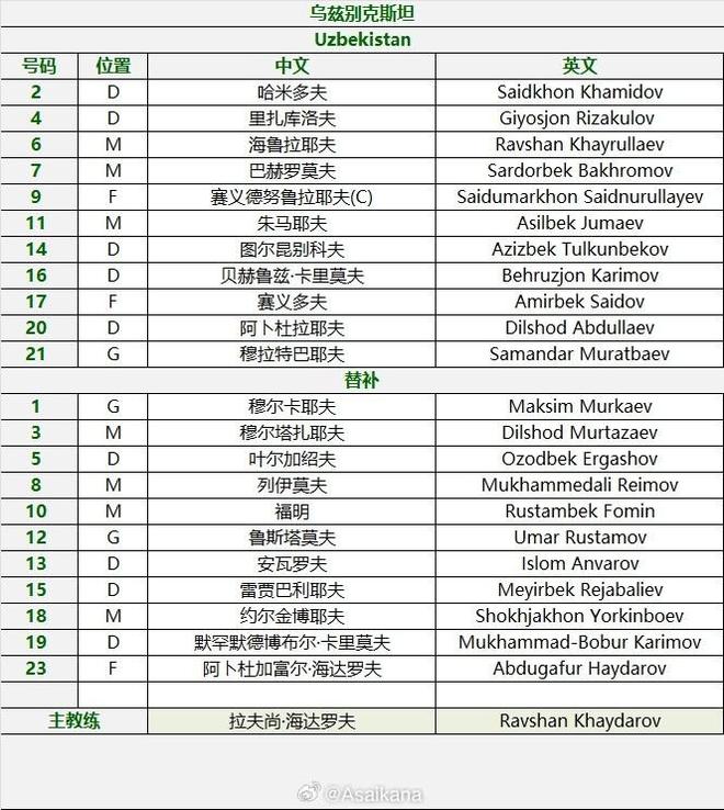 乌兹别克斯坦U23首发总身价为232.5万欧元,身价最高的为7号巴赫罗莫夫和11号茹马耶夫,他们两个的身价均为40万欧元。