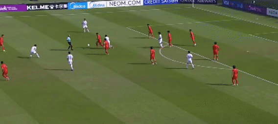 国足没有什么太好的办法,偶有机会就大脚找前点,寻找拜合拉木或者王钰栋。——王钰栋依靠速度冲刺。