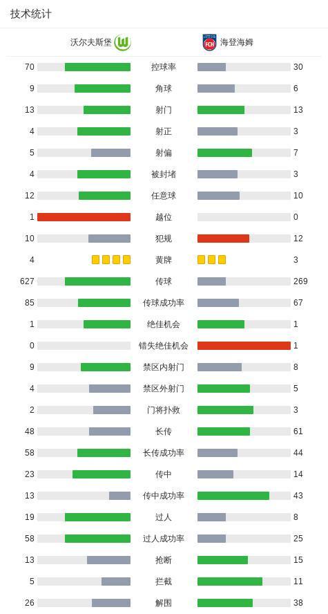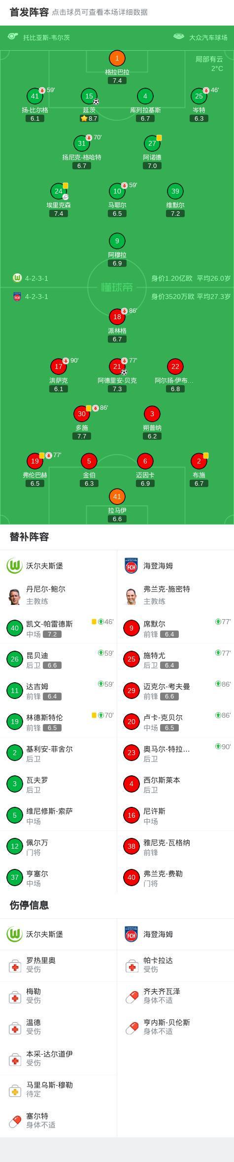 沃尔夫斯堡1-1海登海姆,阿德里安-贝克首开记录,延茨救主