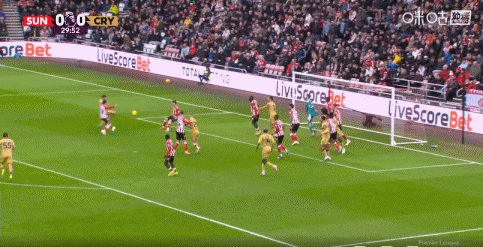 第33分钟,迅速扳平,勒费埃禁区迎球推射破门,桑德兰1-1