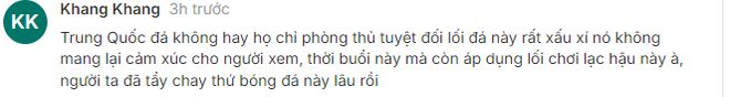还有这位球迷,直言U23国足的踢法丑陋(下图):中国队踢得不好,他们只进行绝对的防守,这种踢法非常丑陋,无法给观众带来任何观赏乐趣,在这个时代还在用这种落后的踢法吗?人们早就已经抵制这种足球了。