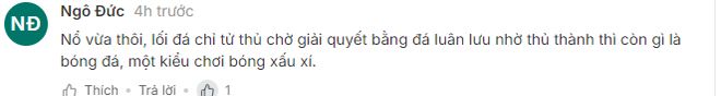 这位网友也提类似的观点(下图),不屑一顾地表示这种靠死守,然后等待门将扑出点球的决胜方式算什么足球,“这是一种丑陋的踢法”。