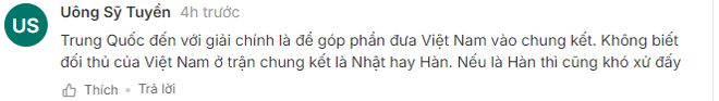 下面这个越南网友很自信,他认为中国队来到这里,就是为了帮助越南队进入决赛的,只是不知道越南在决赛中的对手是日本还是韩国,如果是韩国,那就有点难办了(下图)。