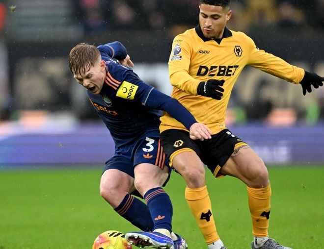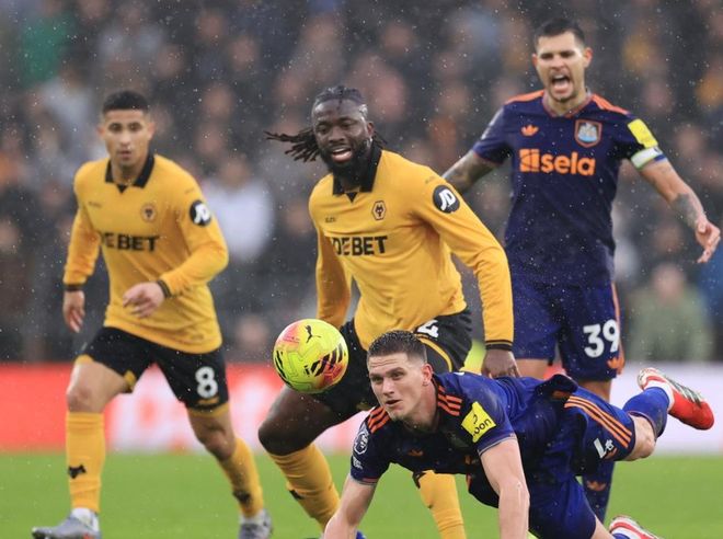 纽卡斯尔联排出433进攻阵型。安东尼-戈登、沃尔特马德和哈维-巴恩斯的进攻三叉戟联袂出击。乔林顿、托纳利和吉马良斯组成3中场。刘易斯-霍尔、博特曼、佳夫和特里皮尔4后卫首发出战。波普担任首发门将。纽卡斯尔联首发阵容总身价4.58亿欧元,而狼队的首发阵容总身价只有1.69亿欧元。
