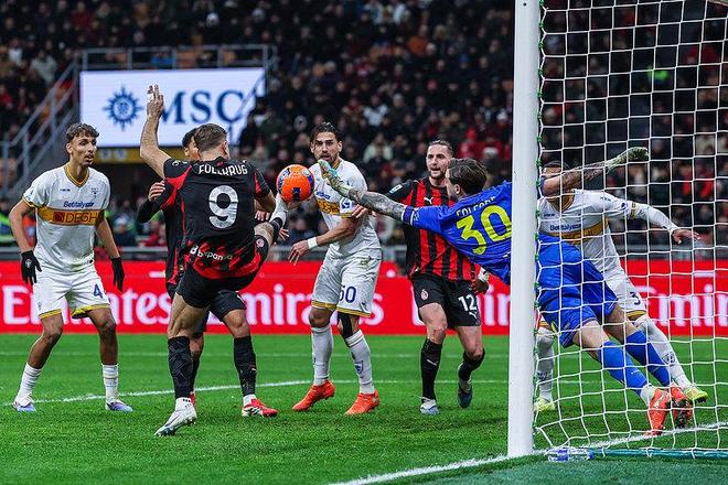 上半场,AC米兰得势不得分,半场战罢,双方战成0-0。下半场第76分钟,萨勒马克尔斯右路传中,菲尔克鲁格头球破门,最终AC米兰1-0战胜莱切。