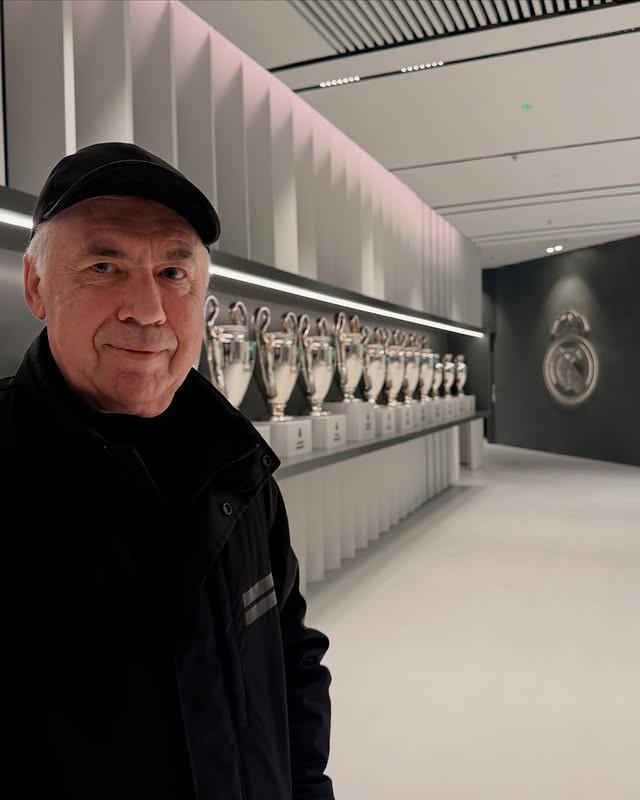 他同时配上了一张自己站在皇马欧冠奖杯陈列室内的照片。皇马历史上共赢得15座欧冠冠军,其中2014年、2022年和2024年的三座,均是在安切洛蒂执教期间获得。