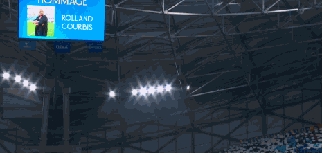 赛前仪式,两队队员为前不久去世的名宿库尔比斯默哀
