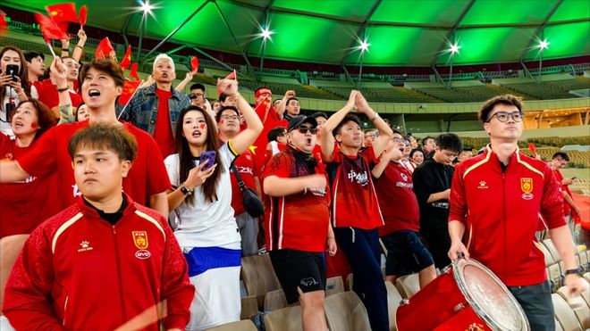 红色是刻入血脉的中国色,是我们同袍一心的战衣!让看台翻涌中国红浪潮,让队员们抬头便见信仰底色,身后皆是同胞力量!