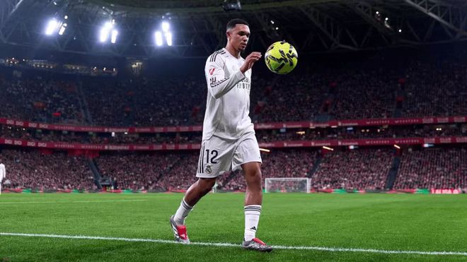 站在阿诺德的角度,这支皇马也并没有想象中来得那般美好。效力于利物浦时期,无论是在克洛普还是在斯洛特的手下,阿诺德都是红军实际上的指挥官,球队的由守转攻要由他经手,通过他的长传球完成提速,到了前场,他的传球和任意球同样是球队制造威胁的重要手段,因为他在进攻端的威胁实在突出,利物浦甚至可以容忍他在防守端出工不出力。但到了皇马,阿诺德的身上没有了特权,反而要承担大量自己不擅长的单防与协防工作,这样的定位,才是他在皇马不算如意的根本原因。