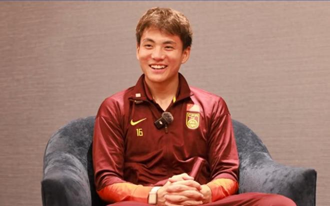 国足U23主教练带着球员胡荷韬出席了赛前发布会。