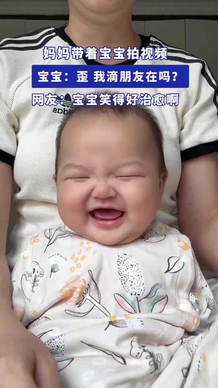 妈妈带着宝宝拍视频,宝宝:歪,我滴朋友在吗?宝宝笑得好治愈啊