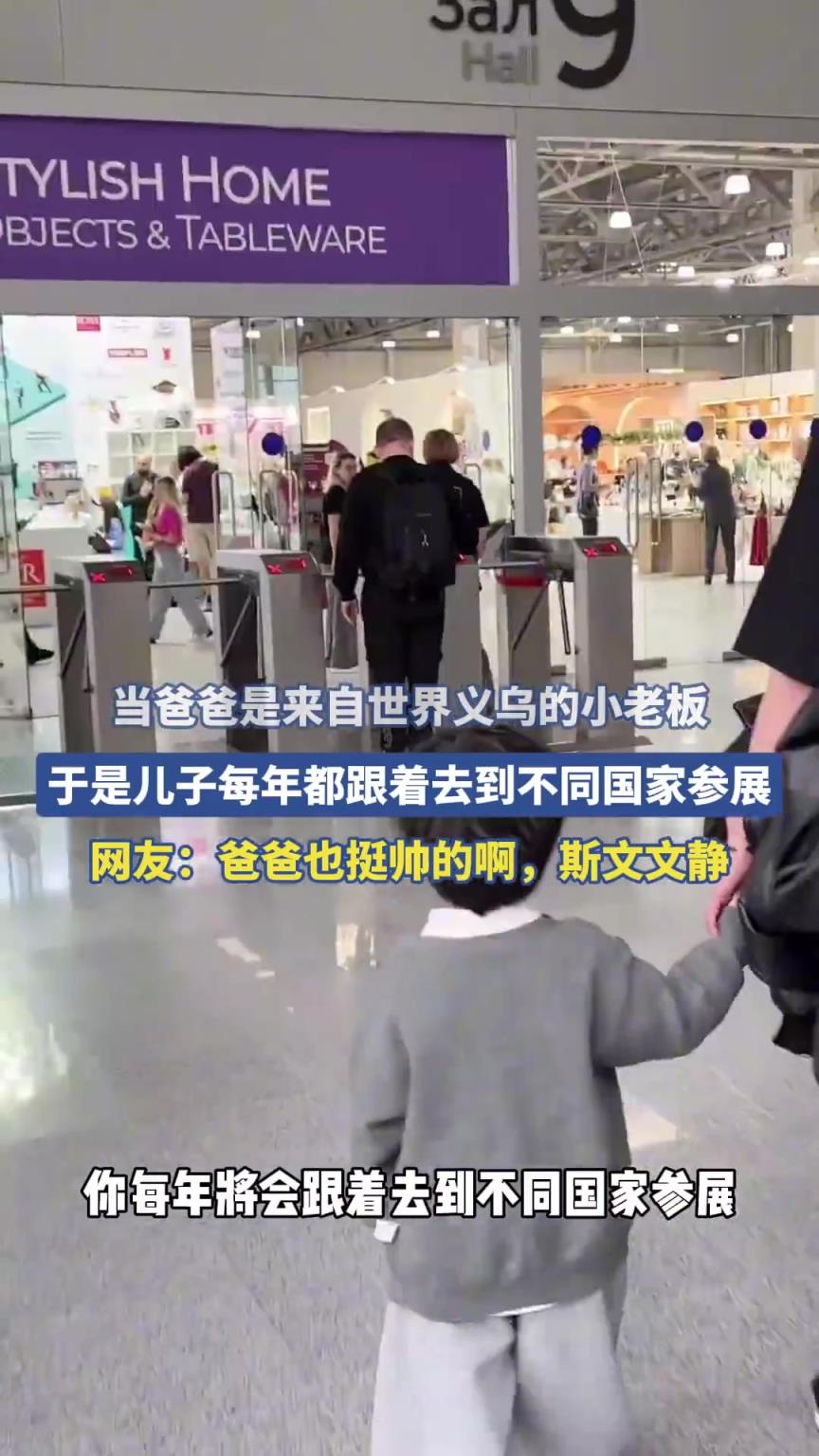 爸爸是义乌老板,儿子随其去各国参展