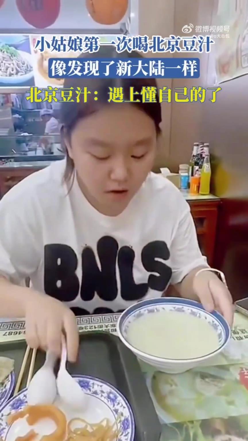 小姑娘第一次喝北京豆汁,像发现了新大陆