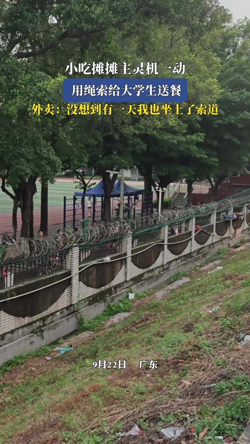小吃摊摊主灵机一动,用绳索给大学生送餐