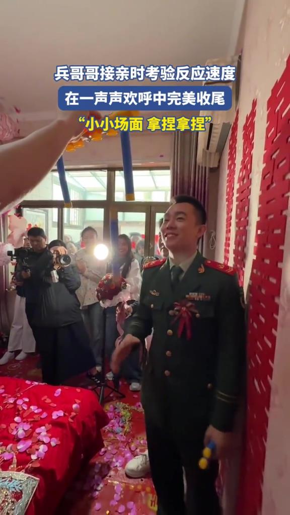 兵哥哥接亲时考验反应速度,在一声声欢呼中完美收尾
