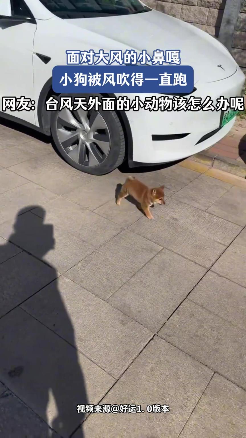 面对大风的小狗被吹得一直跑,台风天外面的小动物该怎么办呢