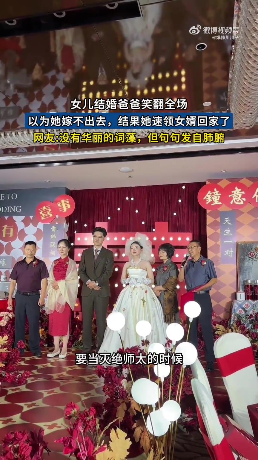 嫁女现场爸爸爆金句!笑称“以为嫁不出”