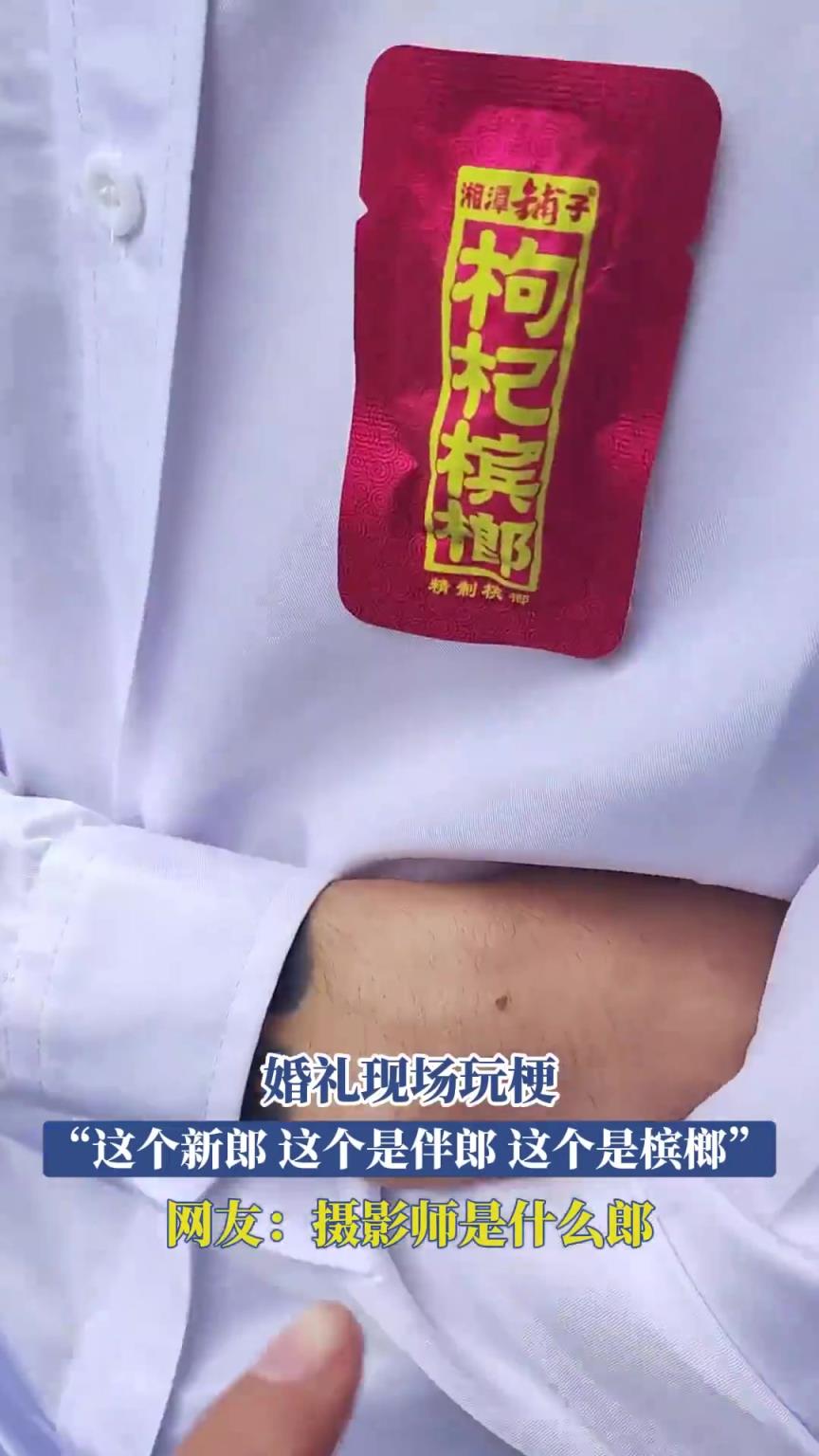 婚礼现场玩梗,“这个新郎,这个是伴郎,这个是槟榔”