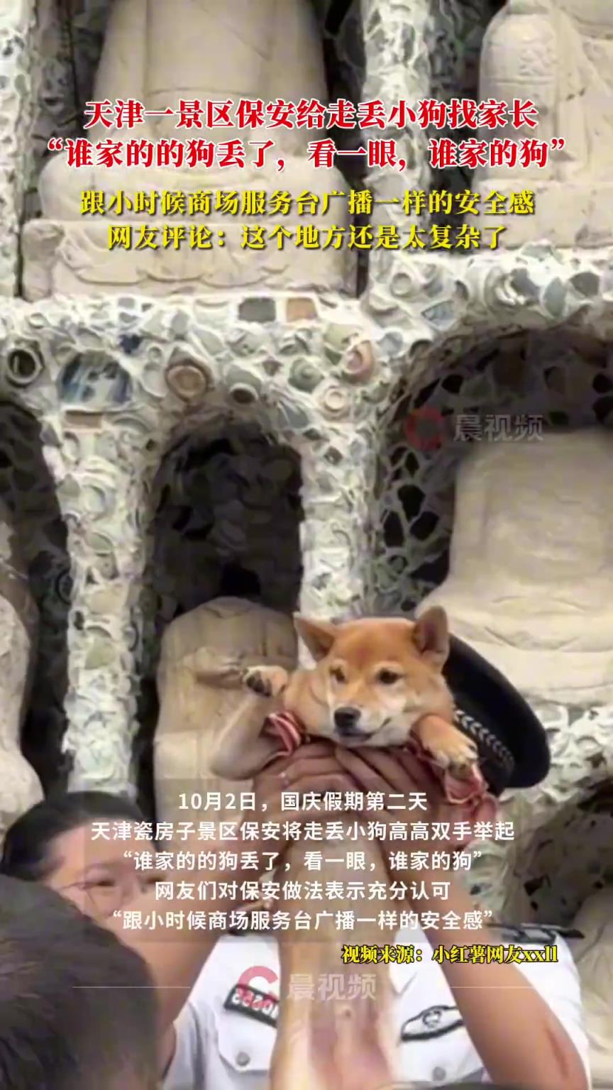 天津一景区保安给走丢小狗找家长