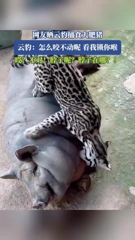 网友晒云豹捕食大肥猪,云豹:我锁你喉,哎?不对!脖子呢?