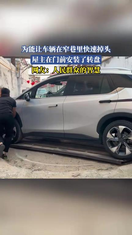 为能让车辆在窄巷里快速掉头,屋主在门前安装了转盘