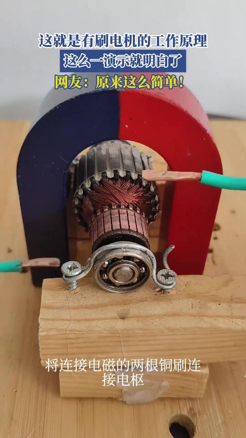 这就是有刷电机的工作原理,这么一演示就明白了,原来这么简单