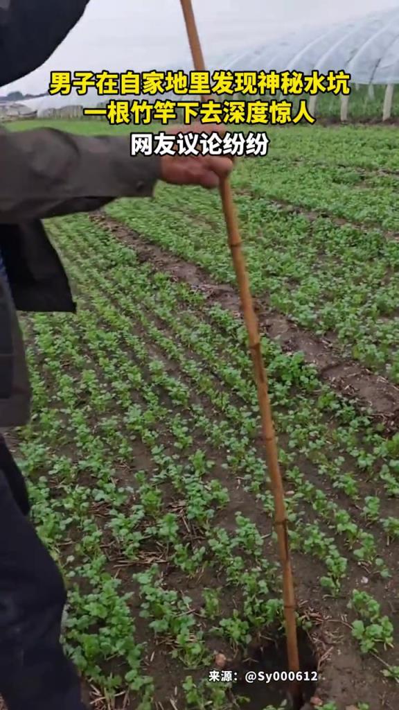 男子在自家地里发现神秘水坑,一根竹竿下去深度惊人!
