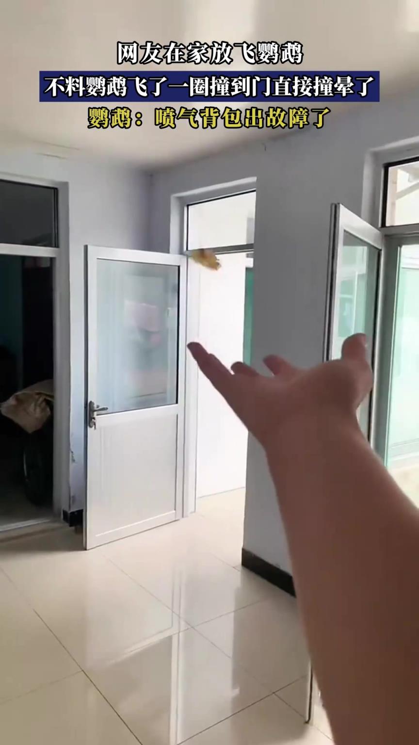 网友在家放飞鹦鹉,不料鹦鹉飞了一圈撞到门直接撞晕了