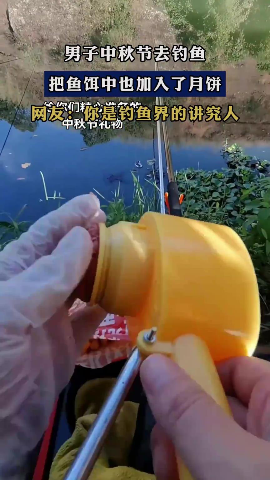 男子中秋节去钓鱼,把鱼饵中也加入了月饼