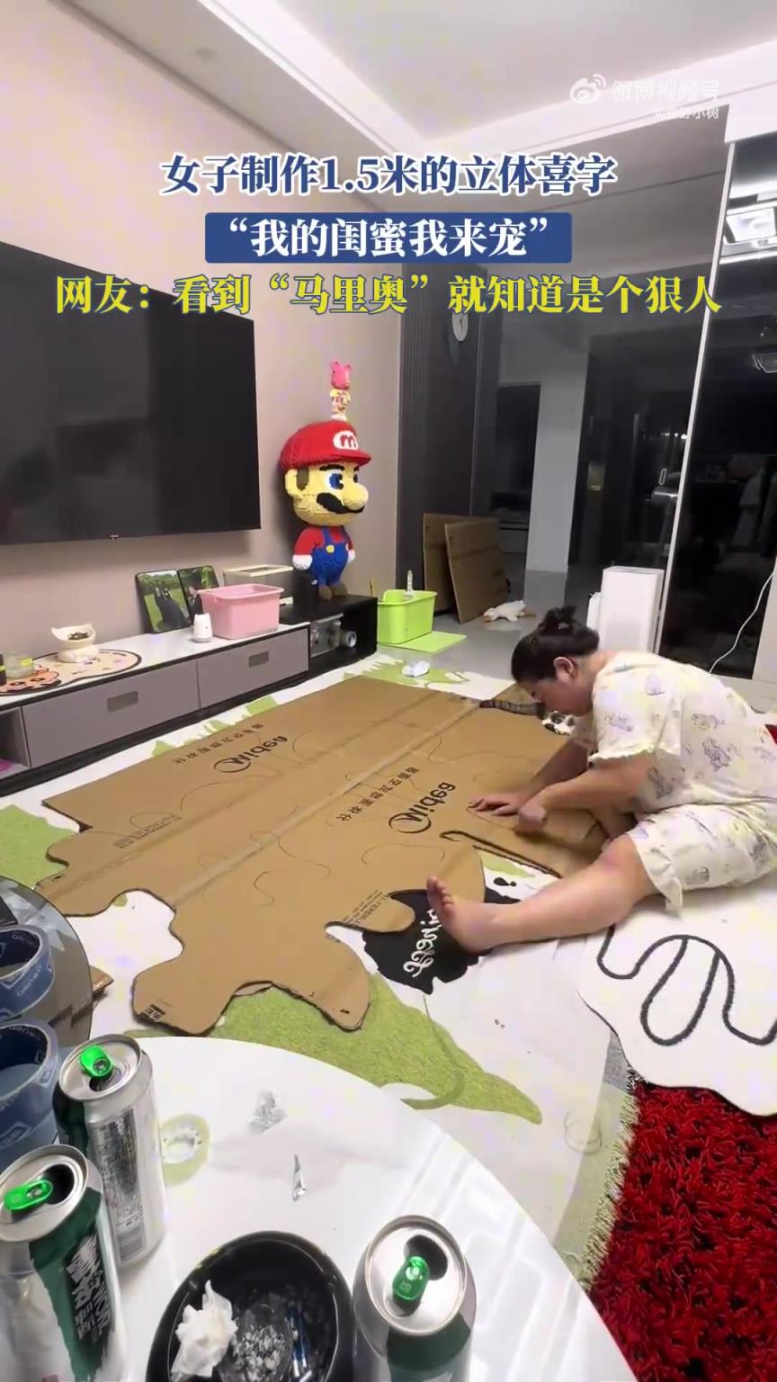 女子制作1.5米的立体喜字,网友:看到“马里奥”就知道是个狠人