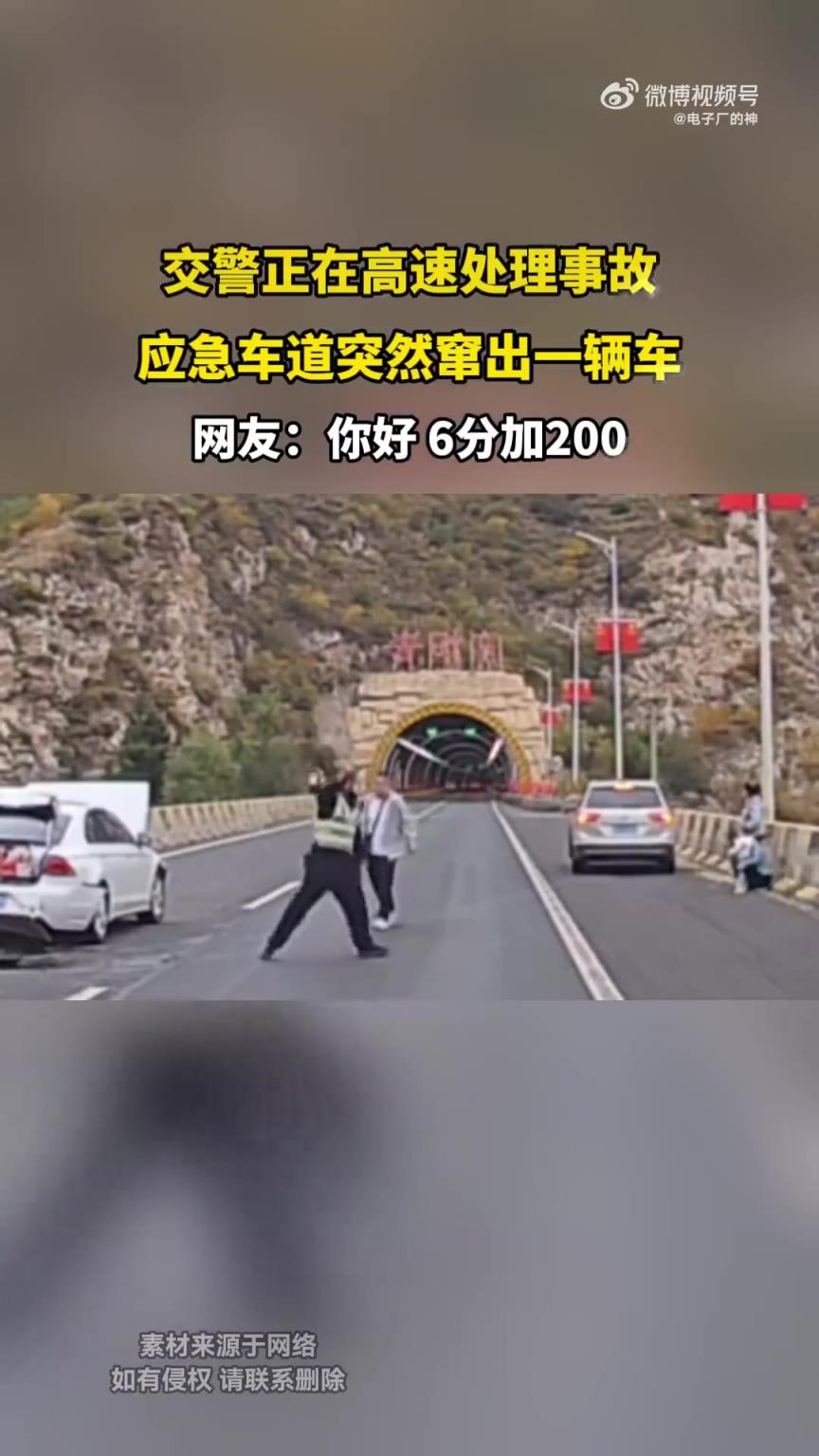 交警正在高速处理事故,应急车道突然窜出一辆车