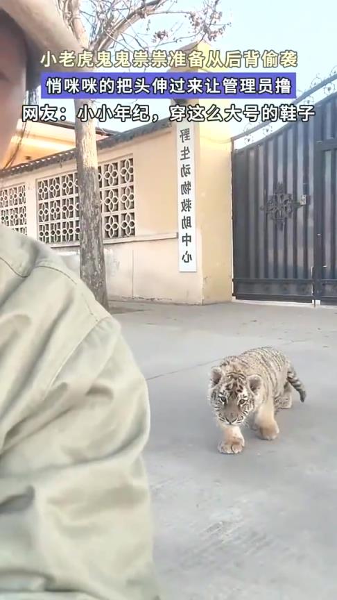 小老虎鬼鬼祟祟准备从后背偷袭,悄咪咪地把头伸过来让管理员撸!