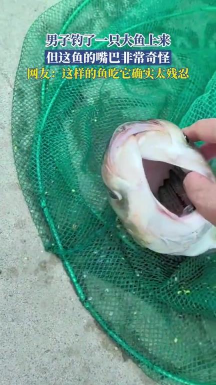 男子钓了一只大鱼上来,但这鱼的嘴巴非常奇怪