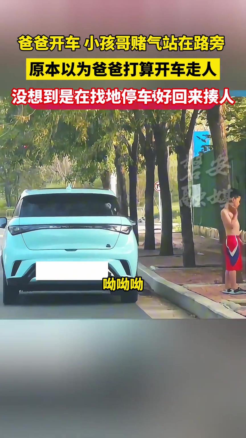 小孩哥赌气站在路旁,原本以为爸爸打算开车走人......