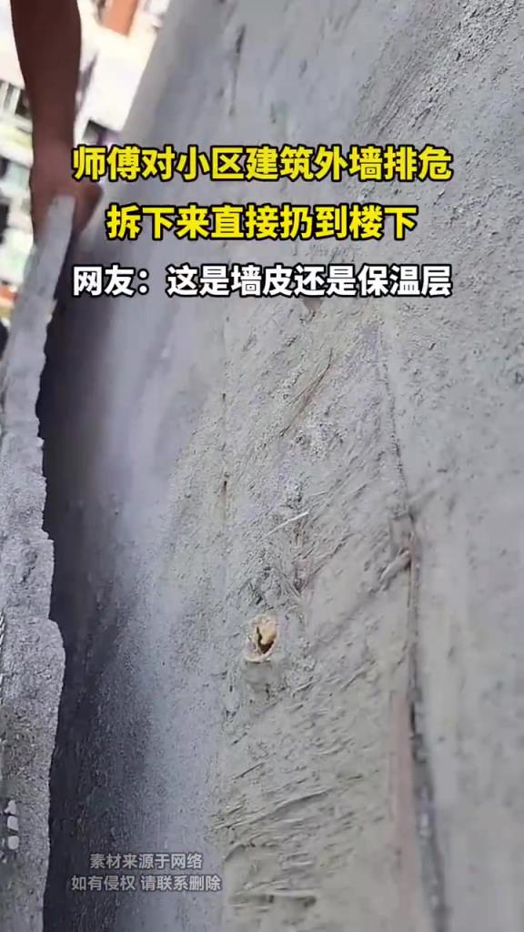 师傅拆外墙排危!拆除物直接扔楼下