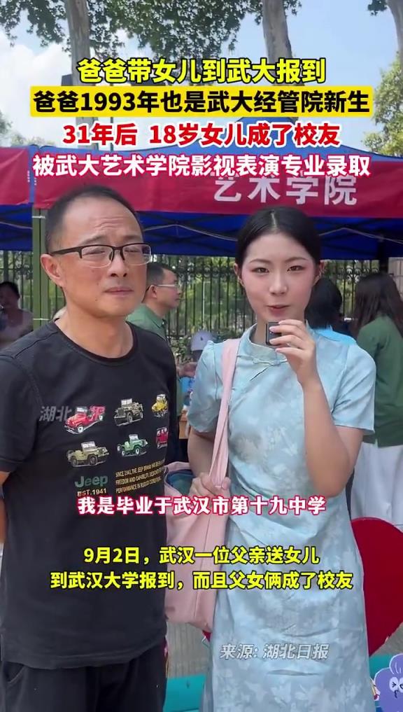 50 岁爸爸带 18 岁女儿武大报到!跨越 31 年成校友
