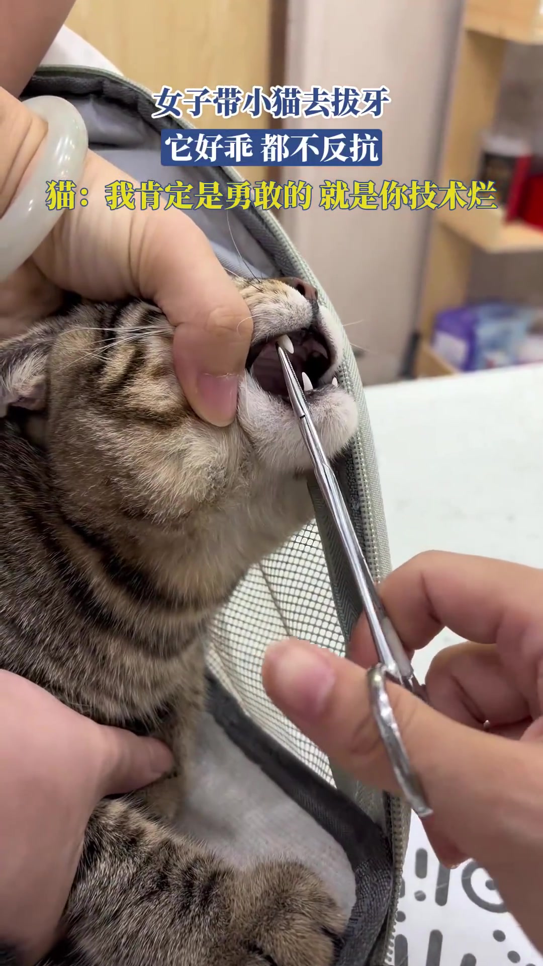 女子带小猫去拔牙,它都不反抗