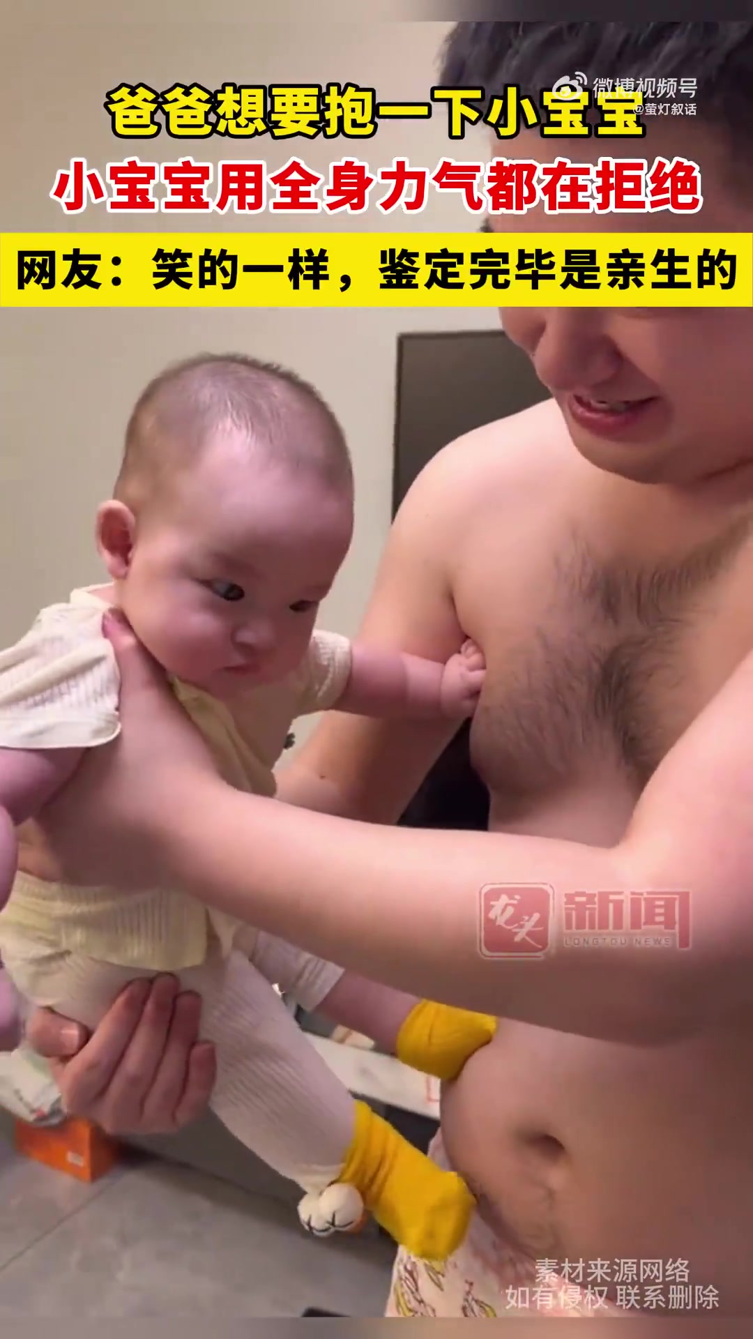 爸爸想要抱一下小宝宝,小宝宝用全身力气都在拒绝
